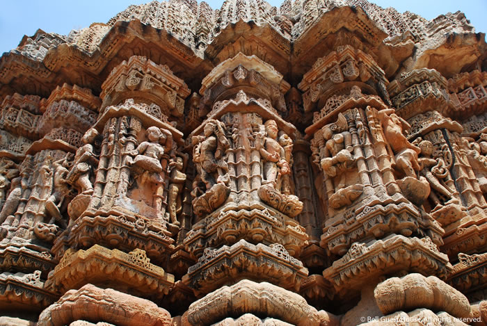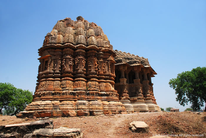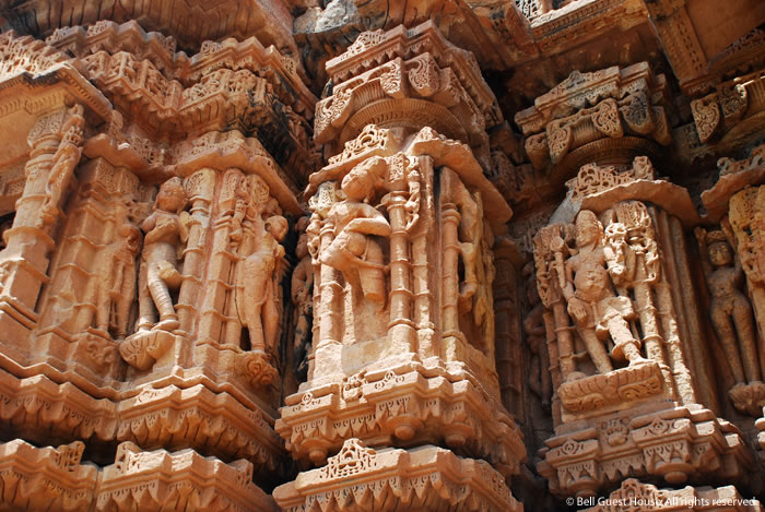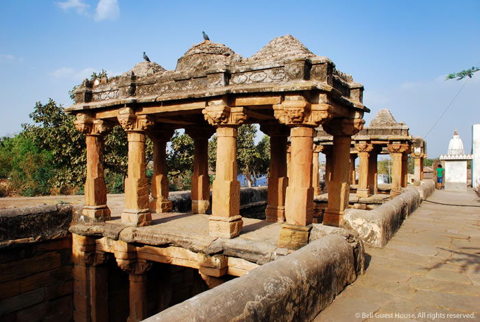 At Sejakpur or Sejathpur, about 18km from Sayla, the Navlakha Temple has high quality carvings on its sandstone walls. The temple has a square plan but its chamfered walls makes the shrine look circular. This is one of the exquisite temples built by the Chalukyan Solanki dynasty that ruled over Gujarat in the 11th and 12th century.